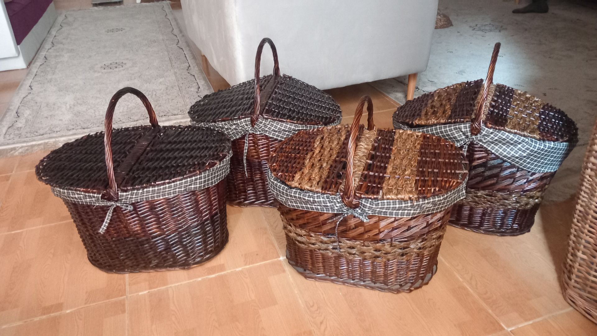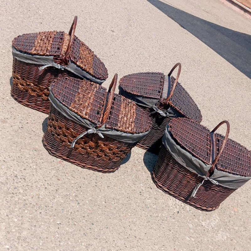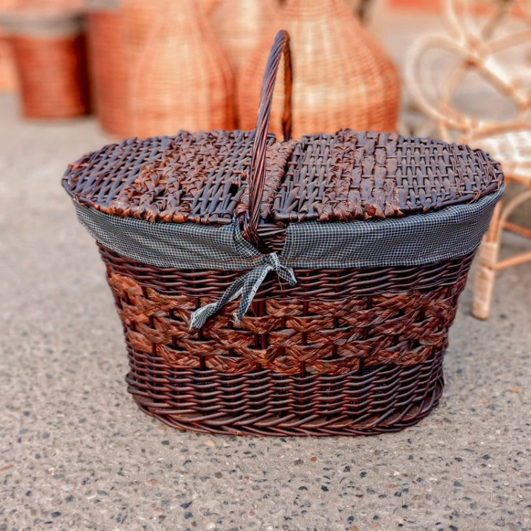 سبد پیک نیک حصیری محکم مروار بافی مدل سر صاف (پس کرایه)